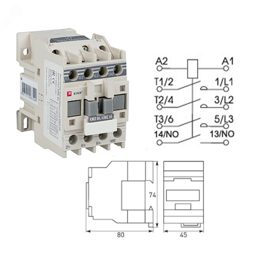 Пускатель магнитный КМЭ 9А катушка управления 220В АС малогабаритный 1NO